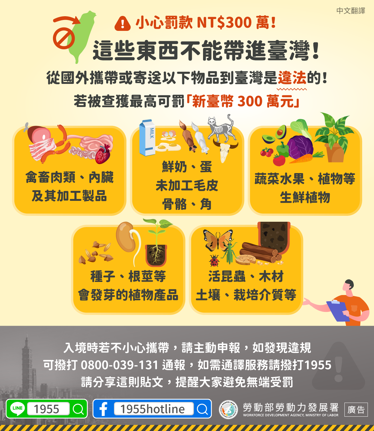 小心罰款NT300萬!這些東西不能帶進臺灣!